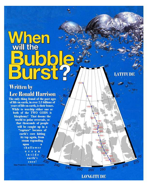 The Bubble reached end of its dangle 1965 to 1975 what started in 1975 by Vatican City digging out Fountain of the Deep to civilization in the core of the Earth violently upset Celtic, broke their Fountain that spun off counterclockwise crashed into top of the world. The Sun's parent falsely thought Planet 10 orbits the Sun, that in an ellipse about its solar jet length orbits sun, to the last 5 polar reversal regular destructions of civilization in Inner solar system. Earth's core full of steam over ocean spinning against 85° latitude boiling neon gas out Arctic hot springs. Earth in a invisible Ort sphere Apollo JesusChrist with sword wound on it to millions of people could save them self out of disaster, if I do it a 5th time? The world don't care about escape until they see a huge red star coming up straight to Sun, bounce it on Portugal. Might choose 1309 to take The Logical Solution, unless its going to be 1897 D.C. to save the Maine, unite the West about the Arctic.